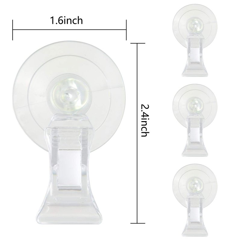 - PACKAGE INCLUDE:You can receive 4 suction cup clips, the diameter of suction cup is 1.57". Please note that to make it work, let the sucker soak in water for a while before using it.If the suction cups is deformed, it can be recovered by soaking in hot water.