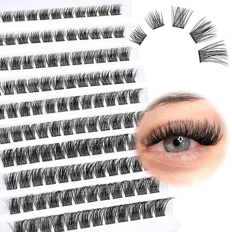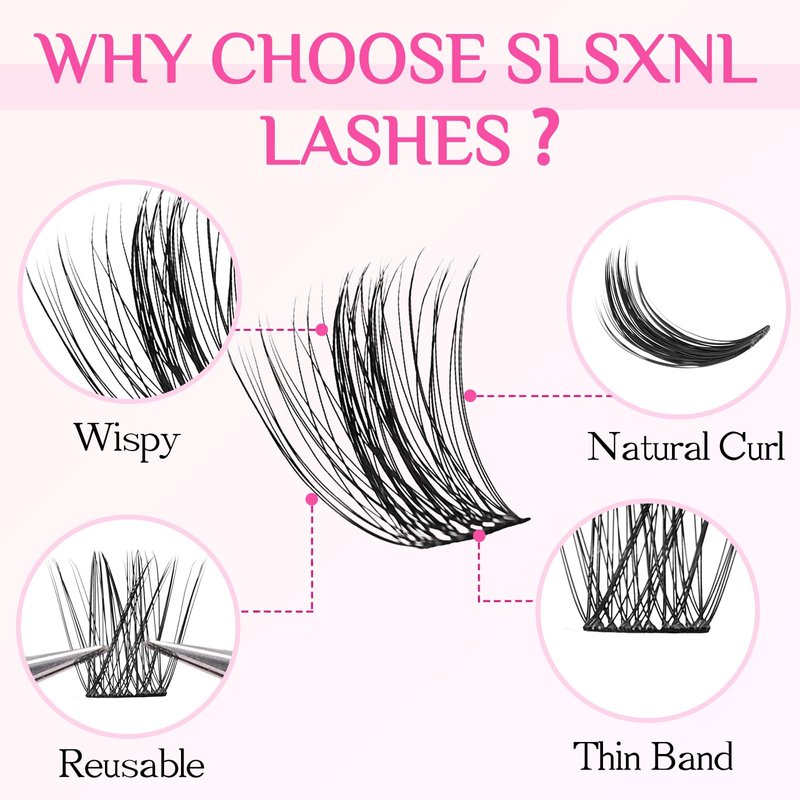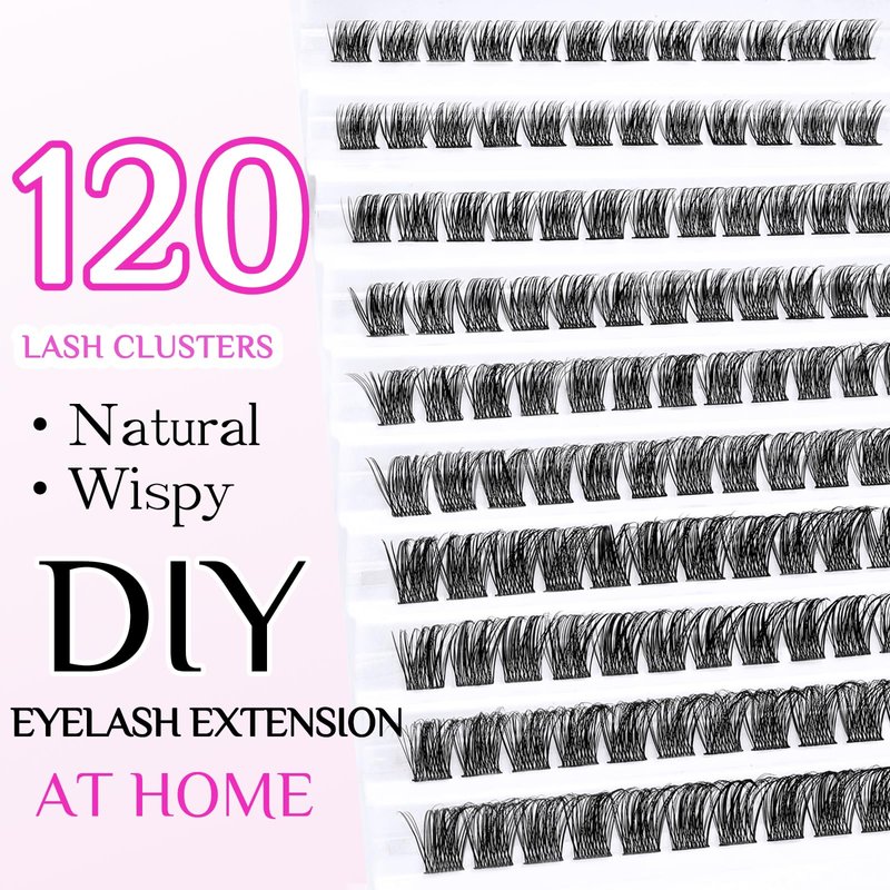 SLSXNL Lash Clusters Eyelash Extensions D Curl Natural Eyelash Clusters 8-16MM Wispy Cluster Lashes 8mm 10mm 12mm 14mm 16mm 120pcs Thin Band False Eyelashes