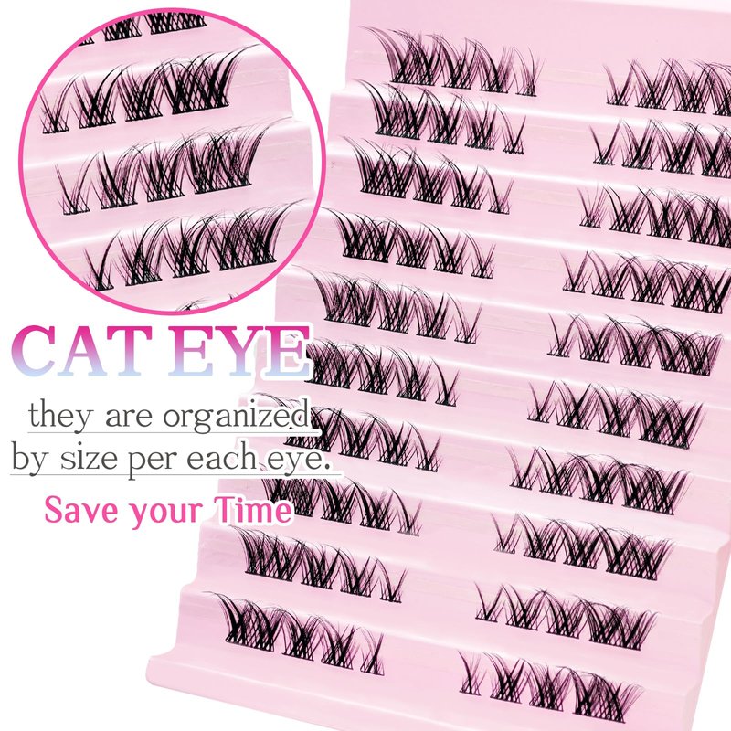 - 【𝐂 𝐂𝐮𝐫𝐥 & 𝐓𝐡𝐢𝐧 𝐁𝐚𝐧𝐝】The lash band is thin and flexible and that makes it easy to apply. The fox eye lash clusters with a gentle C curl shape will perfectly blend into your natural eyelashes.Whether you're heading to work or going out for the evening, these cat eye lashes instantly make a great look without demanding attention.