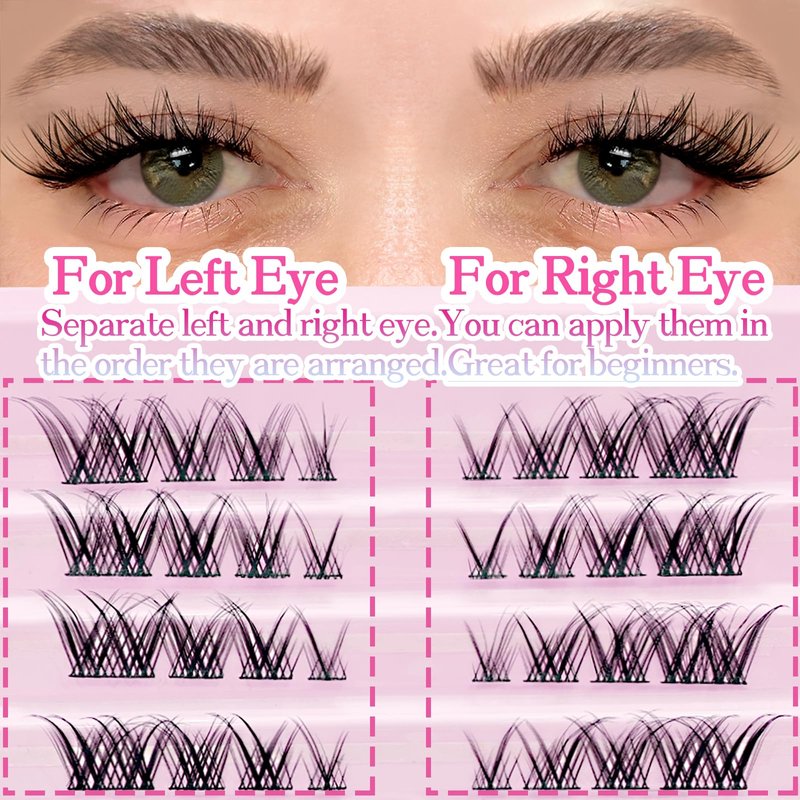 - 【𝐋𝐞𝐟𝐭 & 𝐑𝐢𝐠𝐡𝐭 𝐄𝐲𝐞𝐥𝐚𝐬𝐡 𝐂𝐥𝐮𝐬𝐭𝐞𝐫𝐬】SLSXNL eyelash clusters come in a variety of lengths from 9 to 14mm,each row of cluster lashes is pre-divided into left and right eye lashes.The natural cluster eyelash extensions help you create a subtle fox eye or cat eye effect.