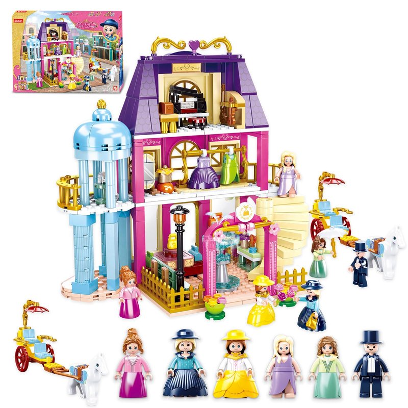 Sluban 6-12 Girl Friends Fashion Shop Building Sets, Princess Shopping Mall Store House Kits with a Horse Car, 7 Doll Minifigures, Compatible with Lego, Birthday Thanksgiving Girls 6-12 Gifts