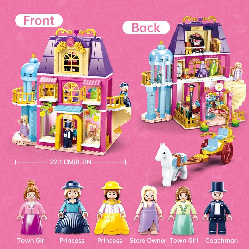 - 【Role-Playing 6 Mini-Figures】Meet the seven charming mini-figures: 2 noble princess, a carriage driver, 2 town girls, and the proprietor of the mall. Each character brings the bustling town to life, ready for imaginative adventures.