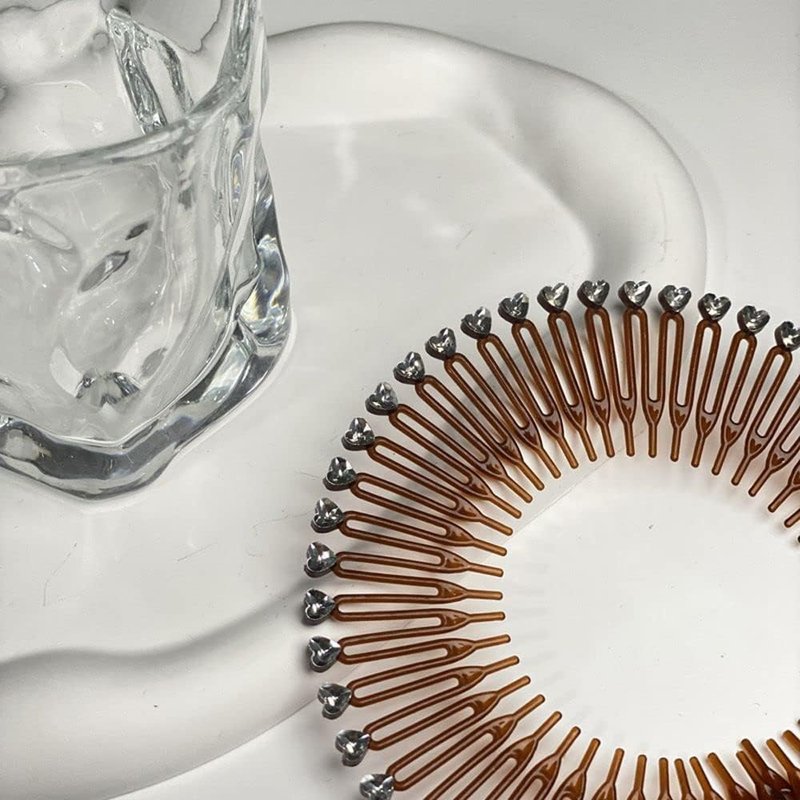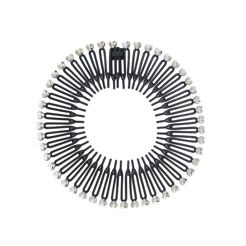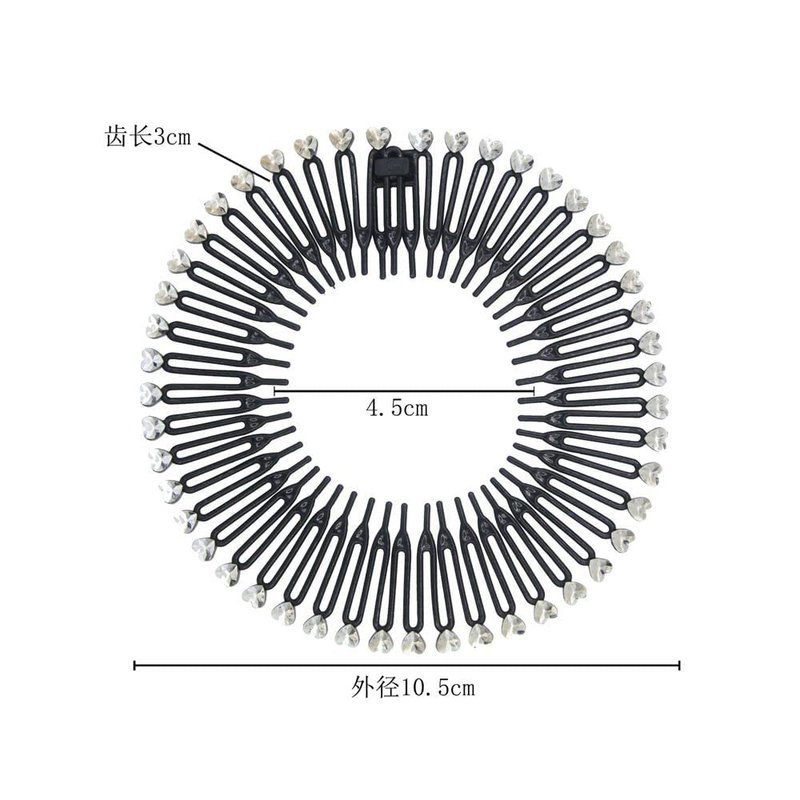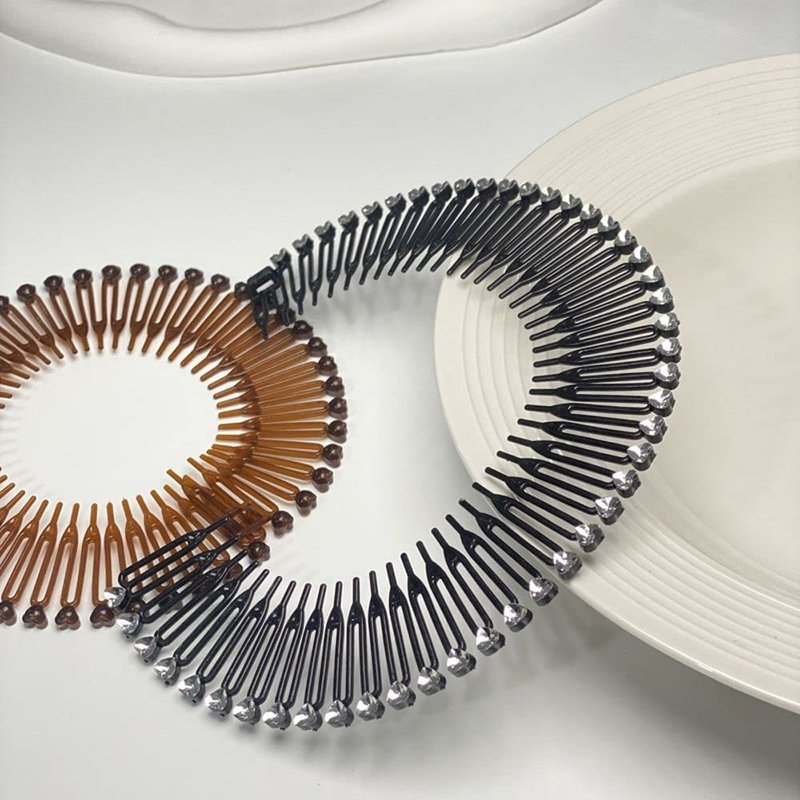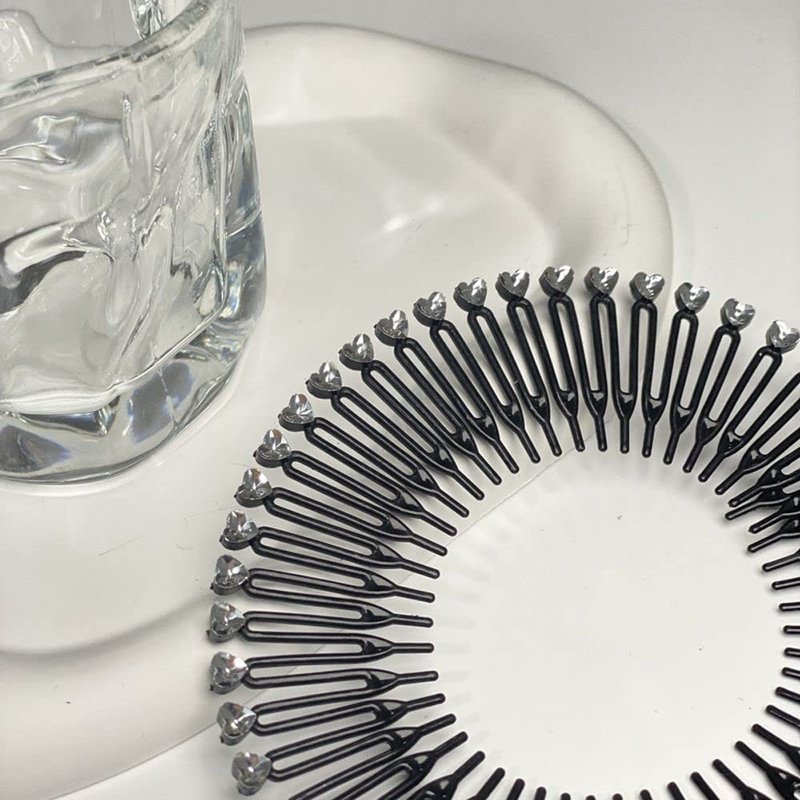 Sluswallow 1Pc Black Full Circular Stretch Comb Headbands, Korean Hair Comb, Hair Band Plastic Full Circle Stretch Diamond Flexible Comb Teeth Headband Hair Accessories