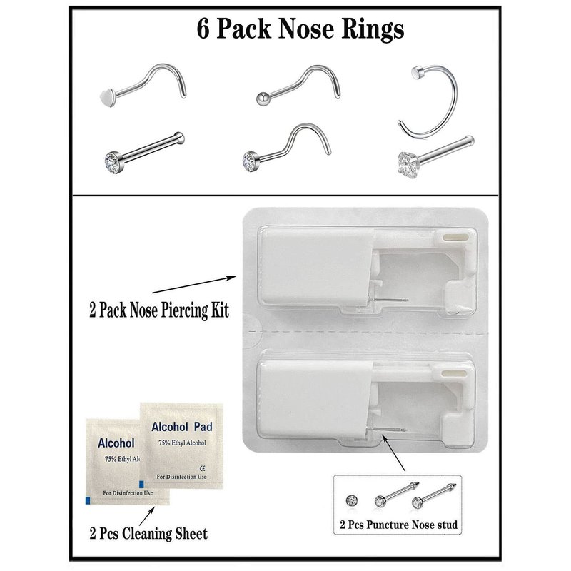 - What You Get: Package includes 2 pcs piercing gun with piercing nose stud, 2 pcs cleaning tablets, 12 pcs nose studs for everyday wear, Satisfy your daily wear. We offer a hassle-free 6-month quality guarantee and friendly customer service