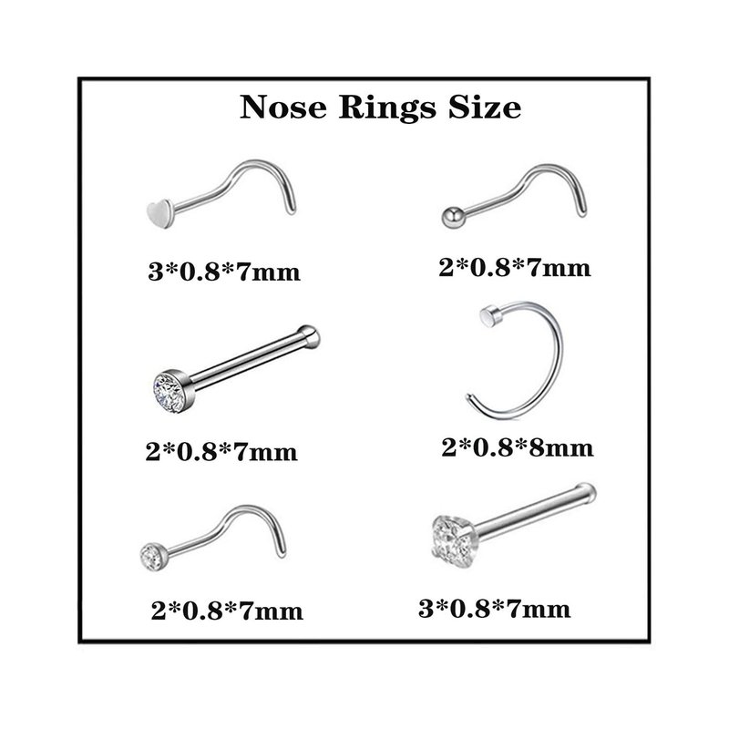 - Nose Pierce Kit Size: Pierce gun size, length: 57mm, height: 22mm. piercing nose stud size, Length: 12mm, Crystal height: 2mm. Everyday wear nose stud Size, Please refer to the product details picture