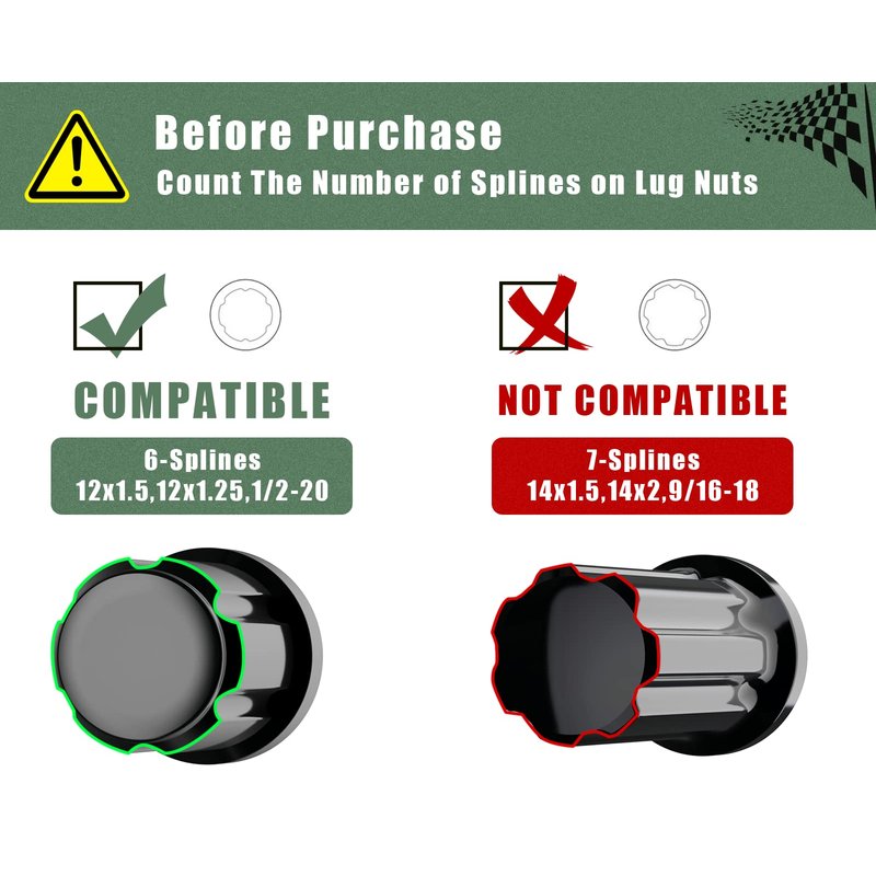- 【First】There are different diameter spline lug nuts on the market. And if you have any questions, visit our store and click "Ask a Question"