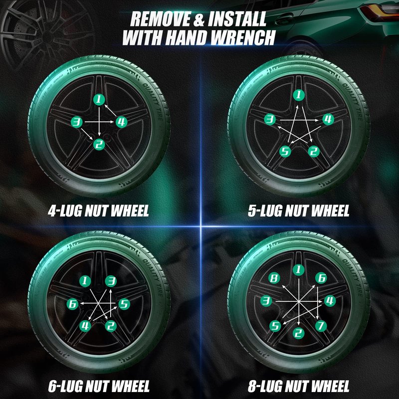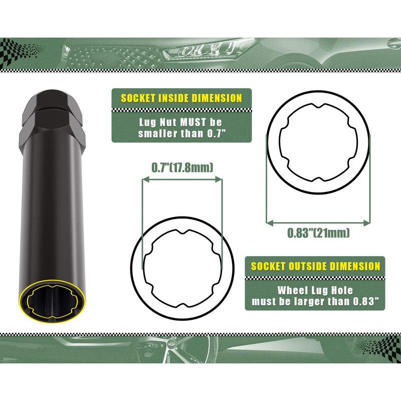 - 【Fitment】6 Point Spline Tuner Lug Nut Socket Key Tool Compatible with M12x1.5, M12x1.25, 1/2-20, M10x1.25, 3/8-20Threads Pitch Spline Lug Nuts