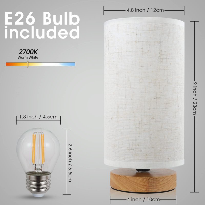 To save you from trouble in matching the right bulb, the bedside night lamps come with a 4W A19 E26 LED bulb. An Equal to 60W incandescent bulb saves up to 80% on your energy bill. The bulbs put out very minimal heat- not even hot to the touch after hours of being on. Designed to be soft, stable & non-flickering, the small Led desk lamp is friendly to your eyes so that you can enjoy what you’re doing for longer.