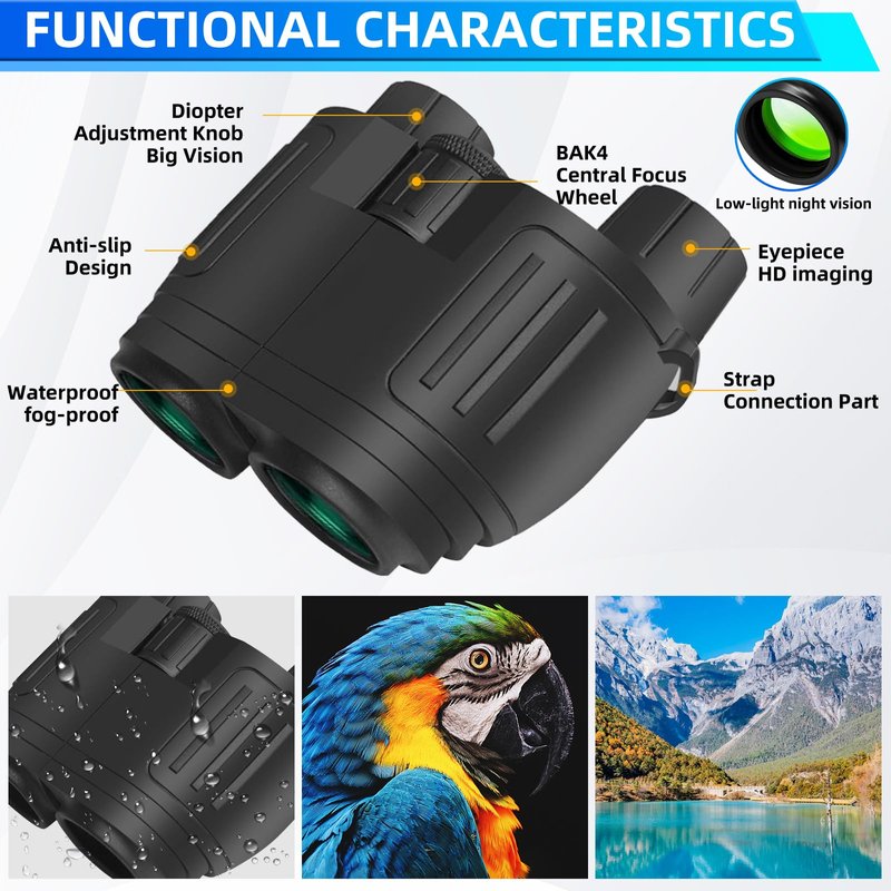 Small Binoculars for Kids and Adults, 20X25 High Powered, Clear Low Light Night Vision Hunting Binoculars - Waterproof, Easy Focus Compact Binoculars for Bird Watching,Cruises,Travel,Hiking