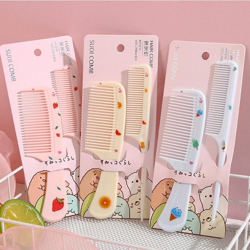2pcs/set Cute Kids Hairdressing Supplies Comb Anti-static Pointed Tail Hair Brush for Girls.