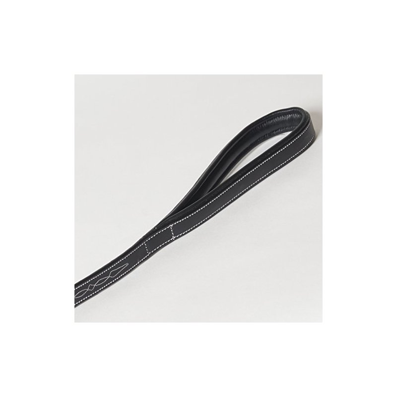 - Hand-stitched white decorative design near handle makes this leash unique and stylish! An impressive leash to complement any black leather collar!