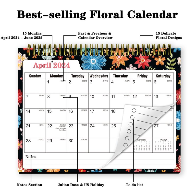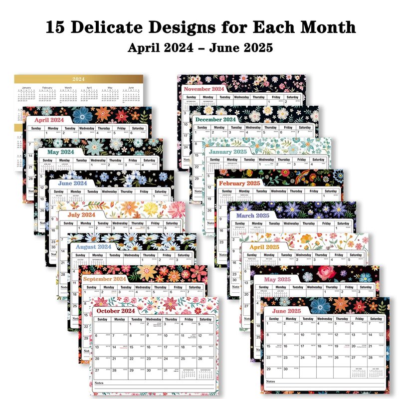 - 【Great 2024-2025 Desk Calendar For Planning】 Elegant Floral Desktop Calendar 2024 runs from APR. 2024 till JUN. 2025, plan smart your everyday work and personal life for an academic year. With the standing flip desk calendar at hand, you can jot down and immediately obvious your daily tasks to make life well organized, it's more practical and professional than a regular wall calendar.
