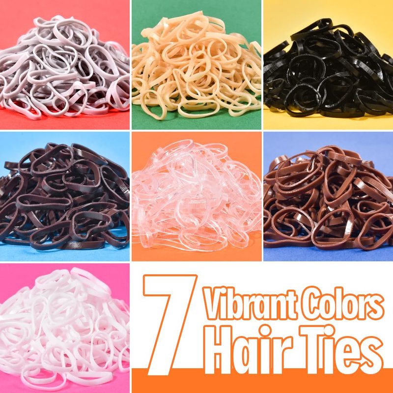 - 【2000 Pieces in 7 Colors To Match YOUR HAIR COLOR!】These rubber bands are an everyday essential and come in 7 beautiful colors includes clear, white, black, grey, blonde, brown, light brown, total 2000 piece in a very functional storage case. Perfect for blondes, brunettes, redheads and any color in between. You can find a color to match your hair color, or add a fun pop of color to your top knot.