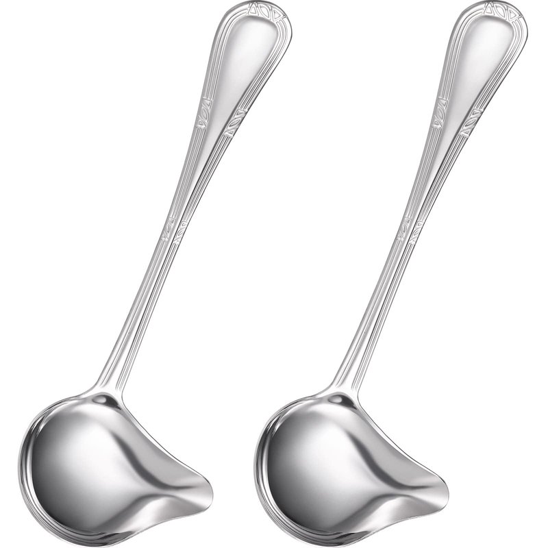 Small Ladle Gravy Ladle Drizzle Spoon 18/10 Stainless Steel Saucier Sauce Soup Spoon for Spooning Gravies and Sauces (2 Pieces)
