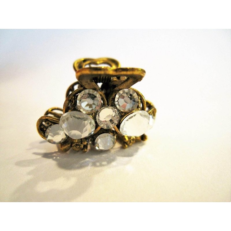 Small mini antique bronze bow metal hair claw clip with crystals bridal clip