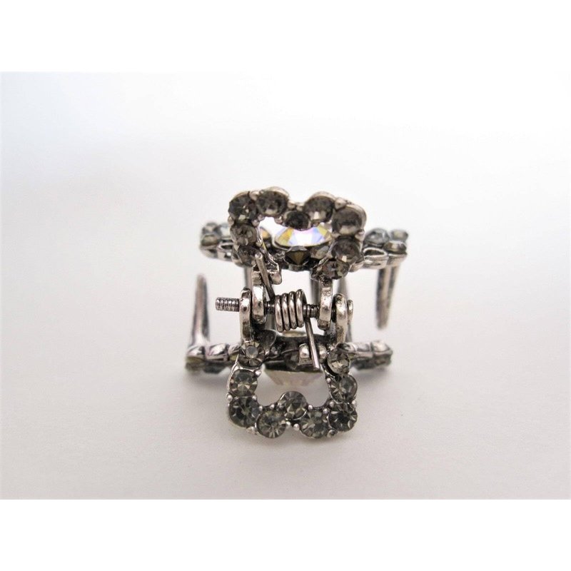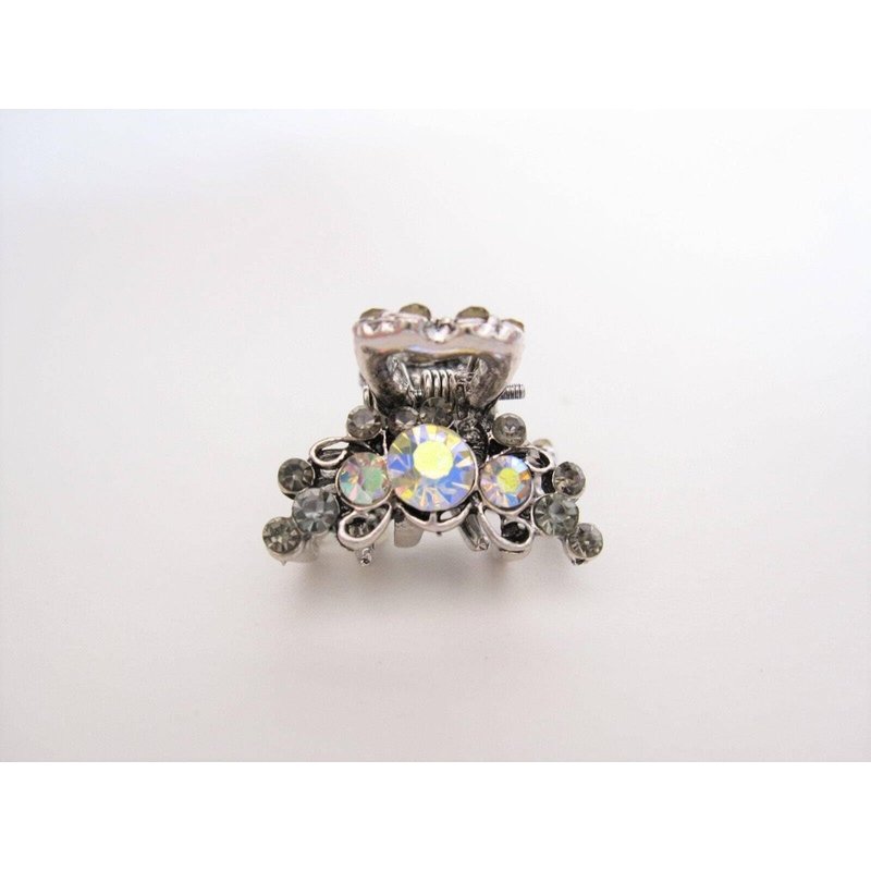Small mini silver metal antique style crystal hair claw clip bridal clip