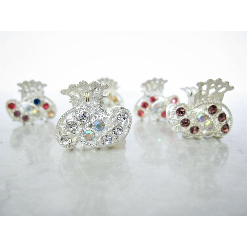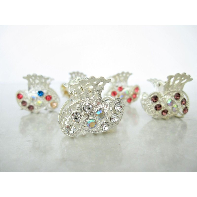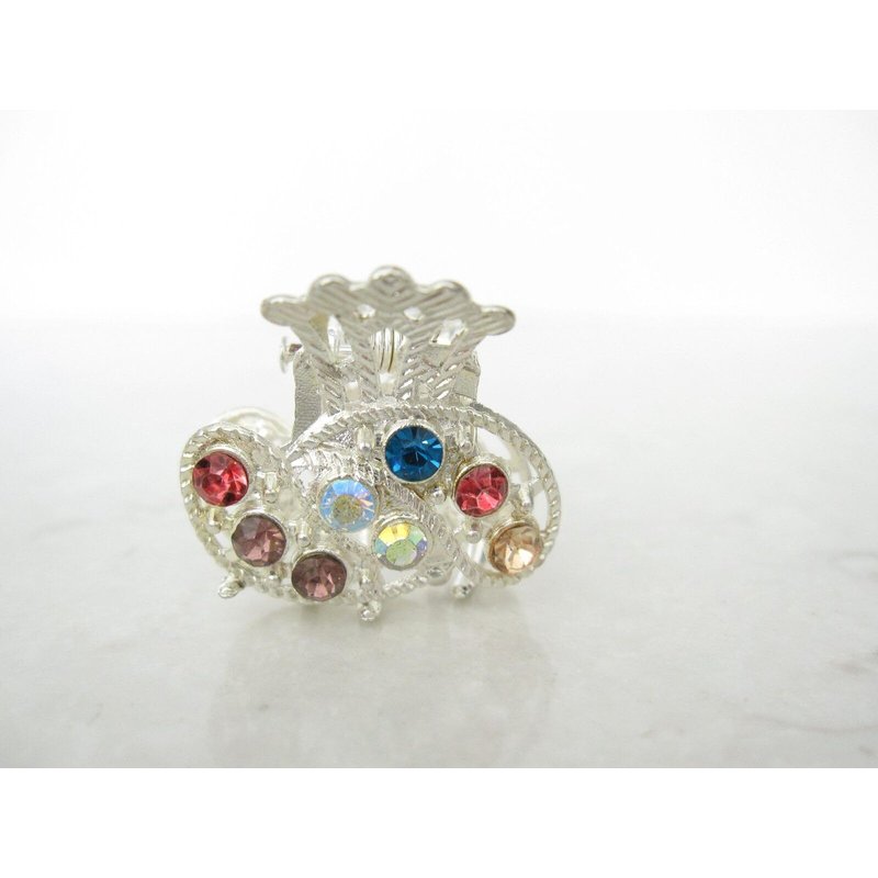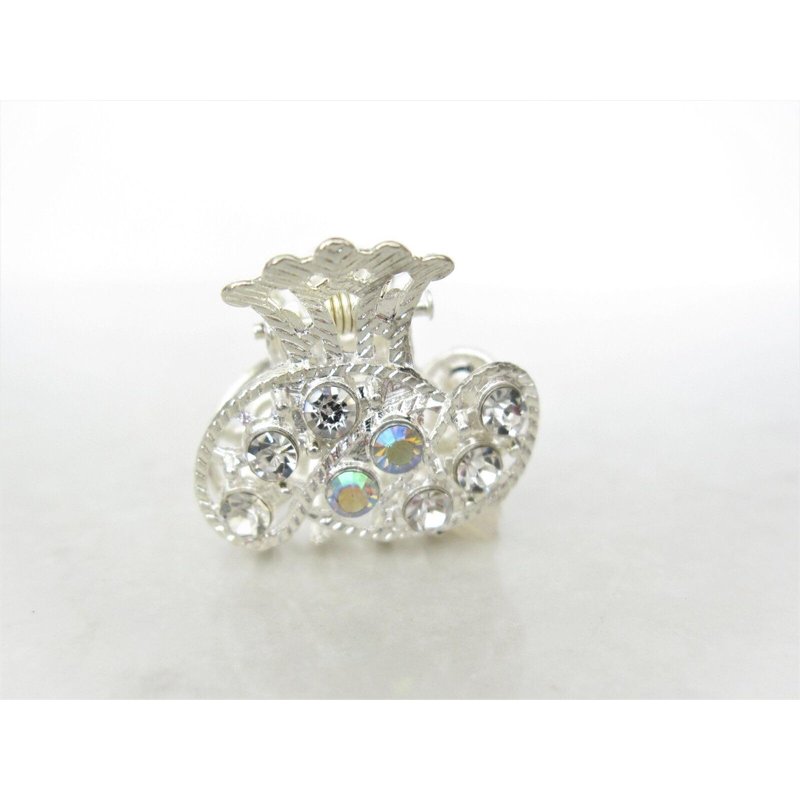small mini silver metal crystal hair claw clip (Primary color: lavender)