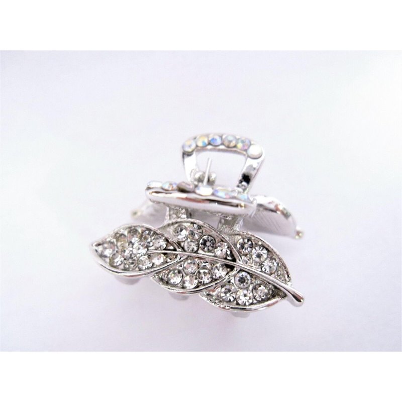 Small mini silver metal leaf crystal hair claw clip bridal clip