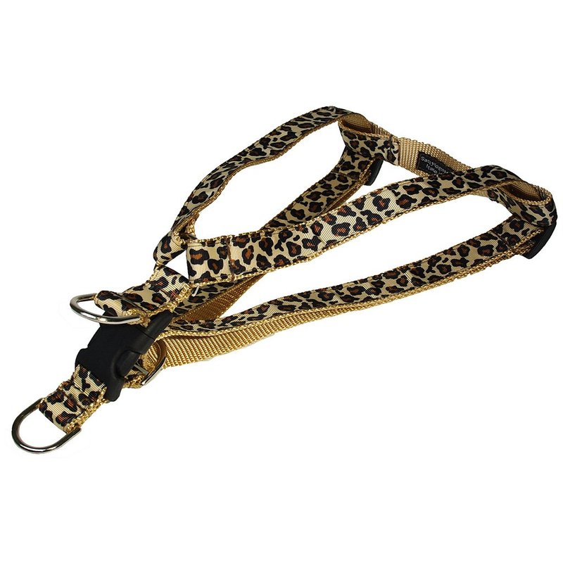 - Small Natural Leopard Dog Harness: 5/8" wide, Adjusts 15-21" Made in USA