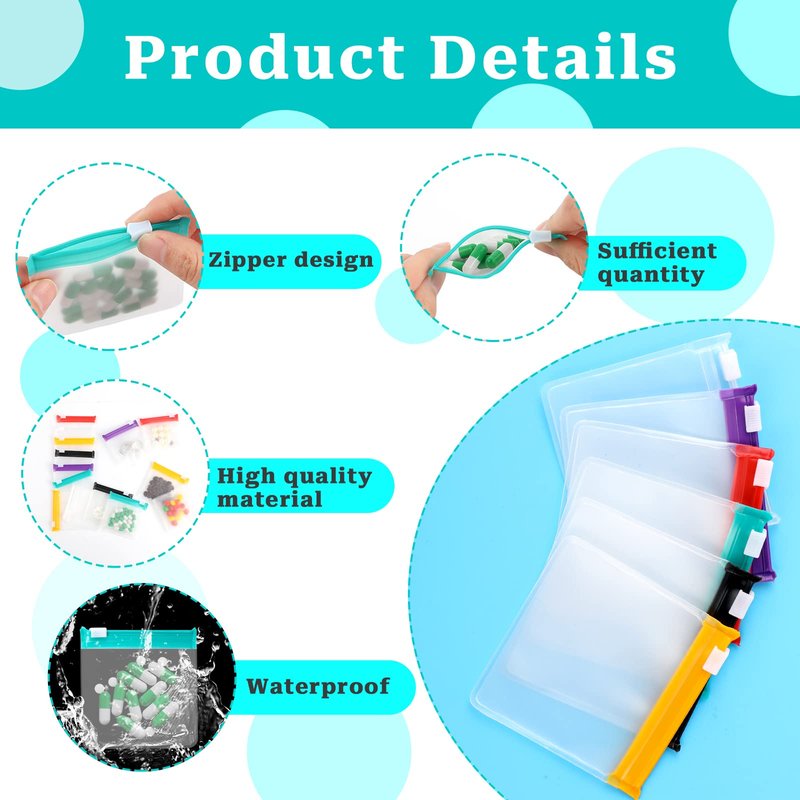 - PREMIUM MATERIAL: These translucent zippered pill pouch sets are made of EVA, sturdy, odor-free, lightweight, waterproof, not easy to tear or break, good seal, and suitable for daily and travel use