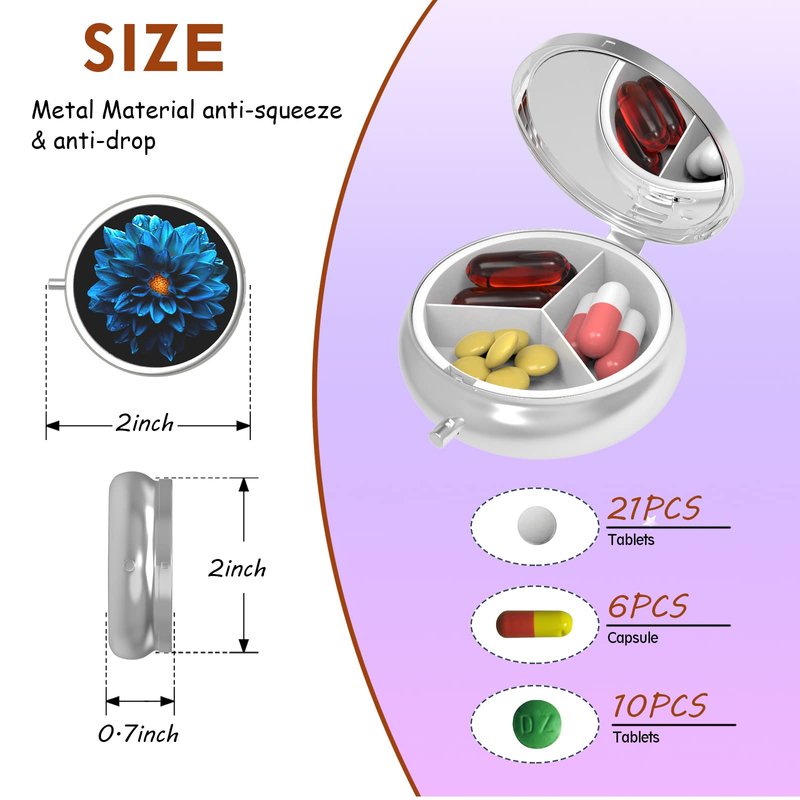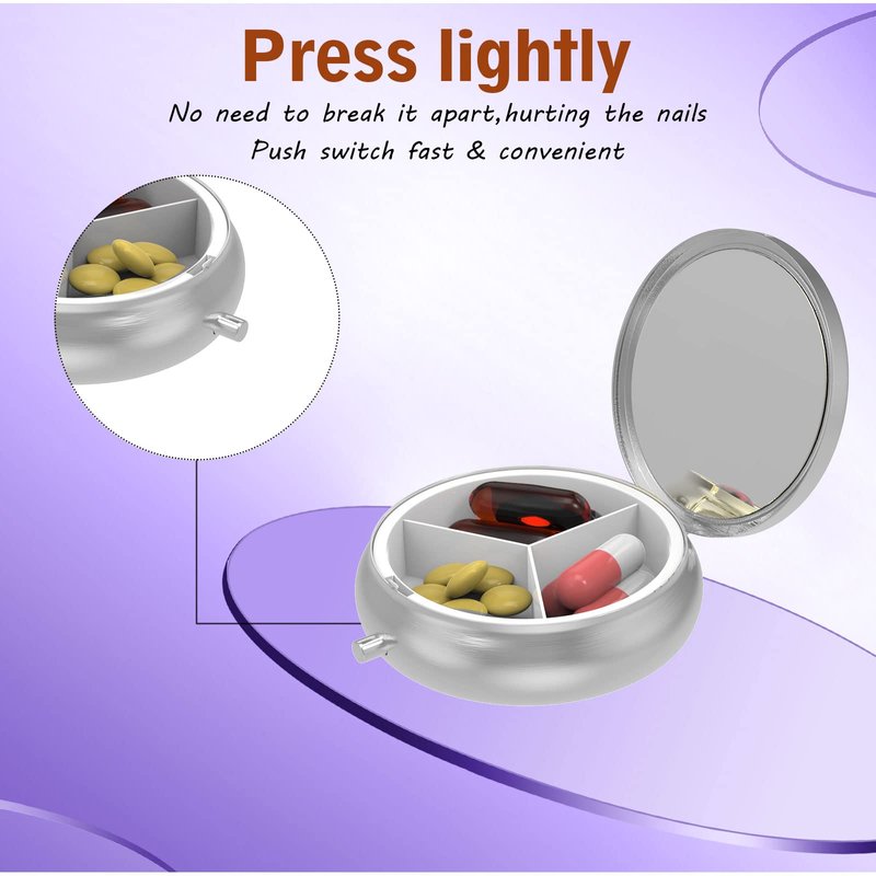 - [High-quality material]: Small pill box is made of high-quality metal material, which is sturdy and rust-proof, press the switch to ensure that your medicine will not spill out, moisture-proof and dust-proof, the partition adopts food-grade plastic structure, which makes you use more rest assured