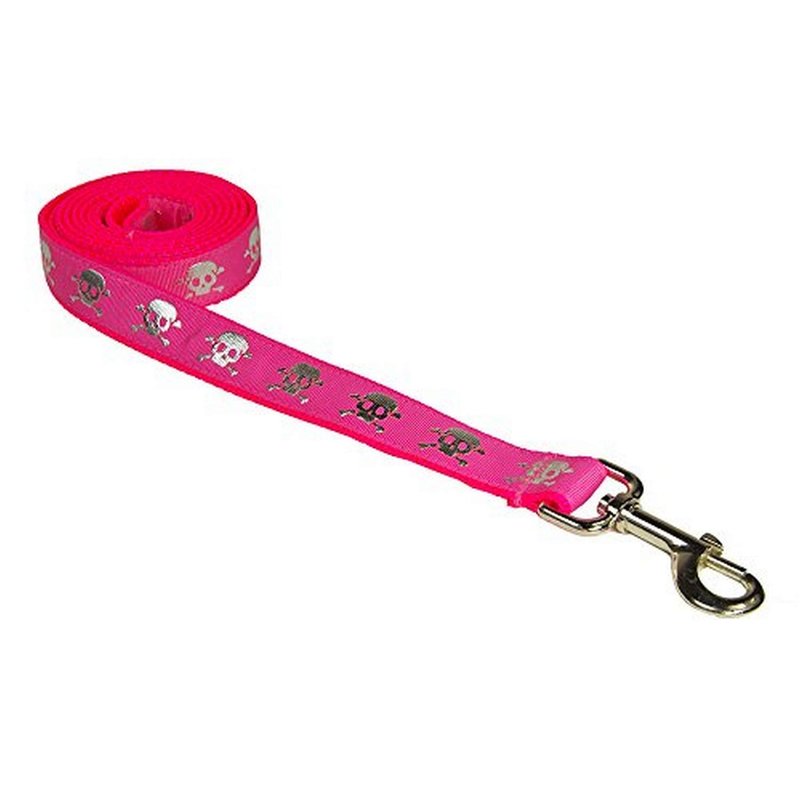 - small Pink reflective Skull dog leash: 3/4" wide, 4ft Length - made in USA.