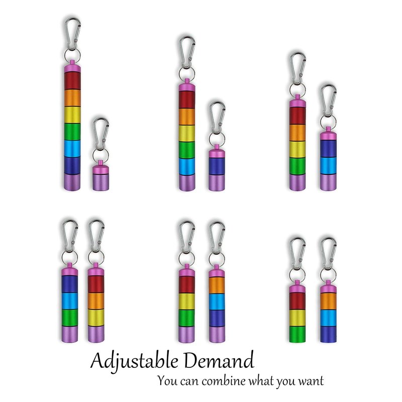 - 【Compact Size】The metal travel pill carrier length is 7.4 inches, diameter is 0.97 inches, and each compartment is 0.86 inches deep, with 2 keyrings and 2 carabiners, not taking up space, compact size design solves the problem of storing medication when traveling. (including extra single piece)