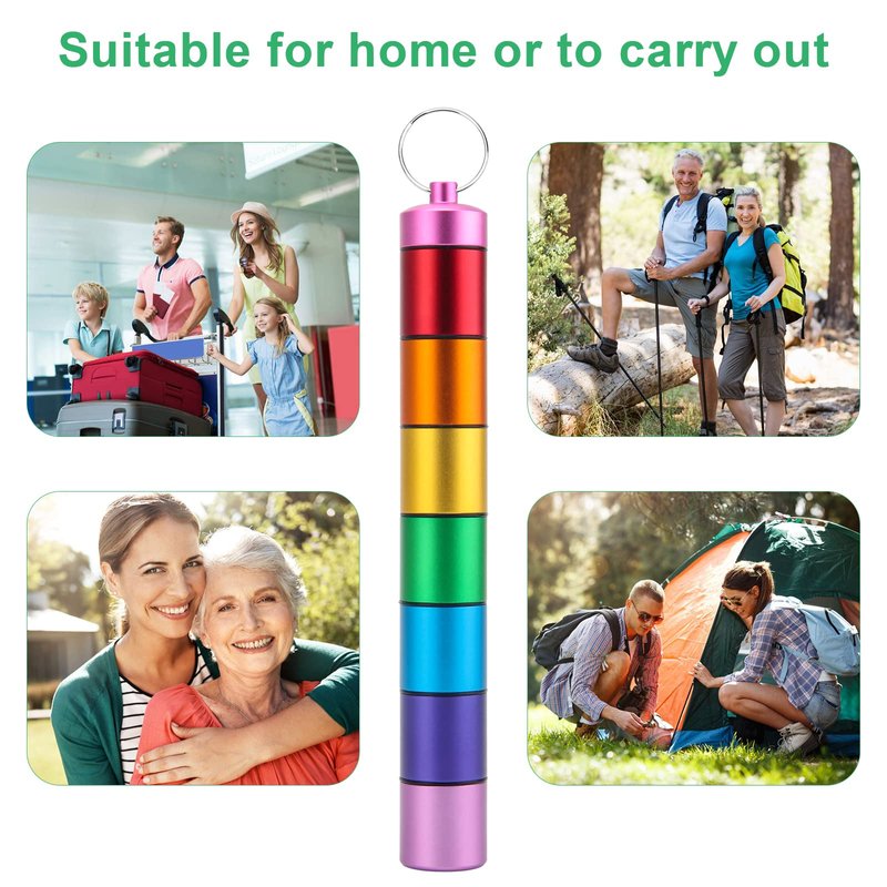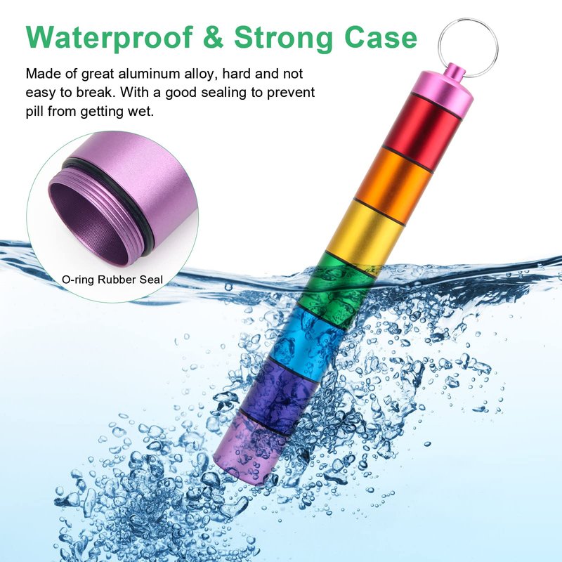 - ♫【Lightweight & Portable】Compact and light metal pill holder tube, easy to put into a purse or pocket, suitable for travel, hiking, picnic, mountain climbing, and other outdoor activities to carry. The colorful pill box case is conspicuous and easy to find, reminding people to take the pills on time.