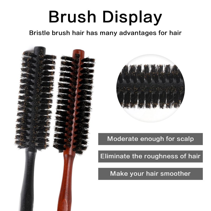 - MULTIPLE HAIRSTYLES - This hairbrush is versatile and suitable for different hair types, including short hair, beards, thin bangs, curly or straight hair. The natural bristle fibers can add volume and shine to your hair, enhance the look of short hair, and help set curls.
