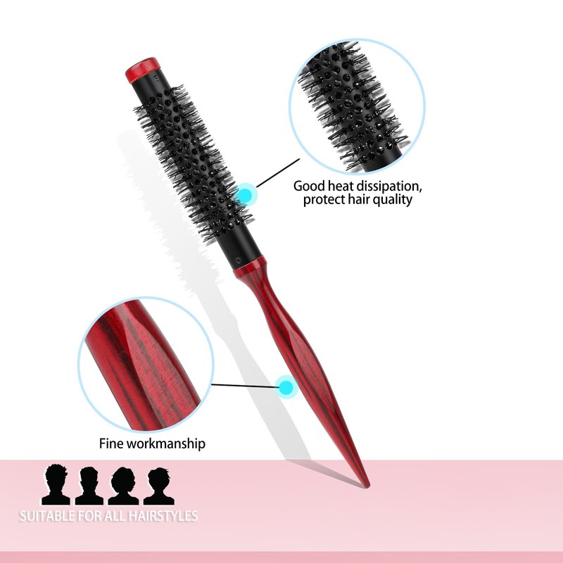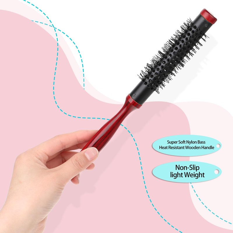 - DURABLE NYLON HAIR - The small round brush is equipped with nylon comb teeth that have good thermal conductivity. These teeth are highly resistant to breakage during high temperature spraying or cleaning, and they maintain their shape without deformation.