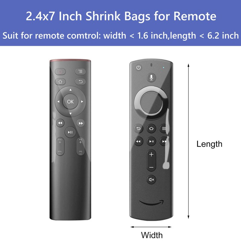 - ✅【What You Will Get】100 Pcs shrink wrap bags for remote control,2.4x7 inches,can be freely cut to fit remote control of different length sizes.It keeps remote control packaged and 100% from scratches.