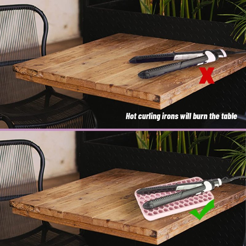 ▲ Silicone pad for hot curling iron grips the countertop well and curved groove design allow hair tools sit well on it without slipping off.