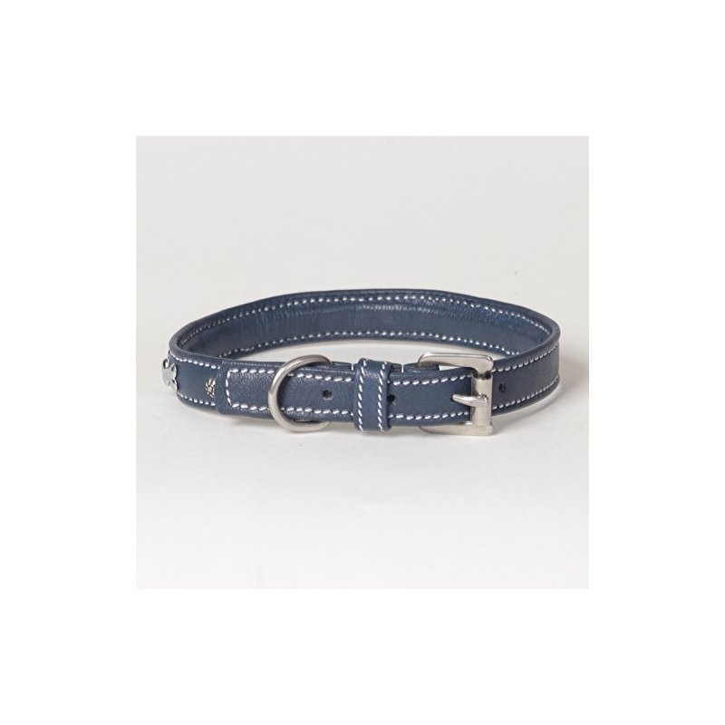 Small Soft Blue Napa Leather Padded Decorated Azzurro Dog Collar - Fits 12" - 14" Neck Size
