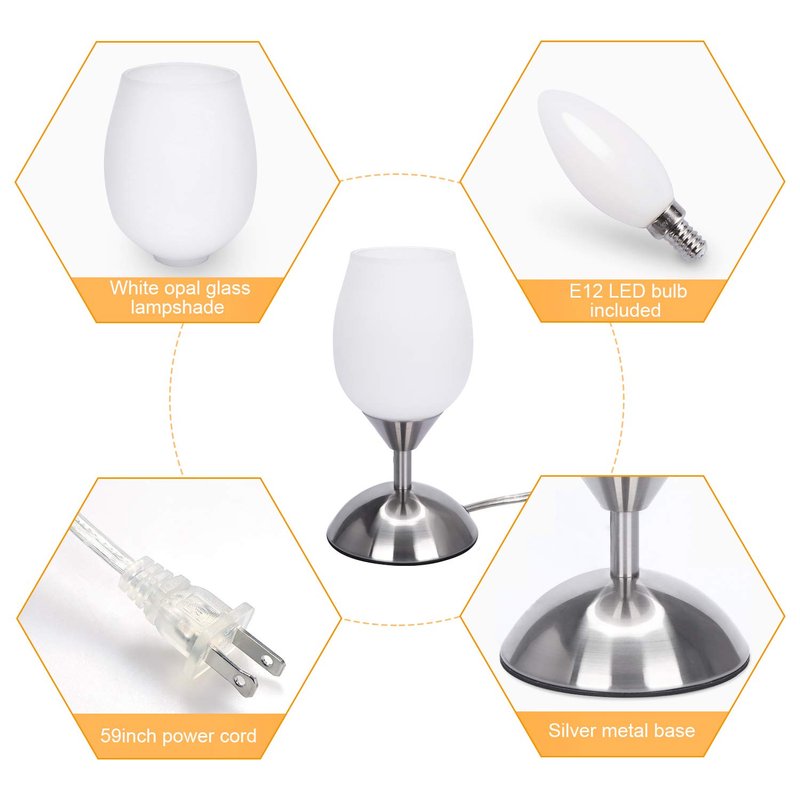 - ADORABLE AND STYLISH DESIGN: White opal glass lampshade enables the dimmable bedside lamp to create a romantic ambience to your room; and shaped like a wine goblet, the mini table lamp can perfectly serve as a night light, ambient lamp and decorative lamp even the light is off.