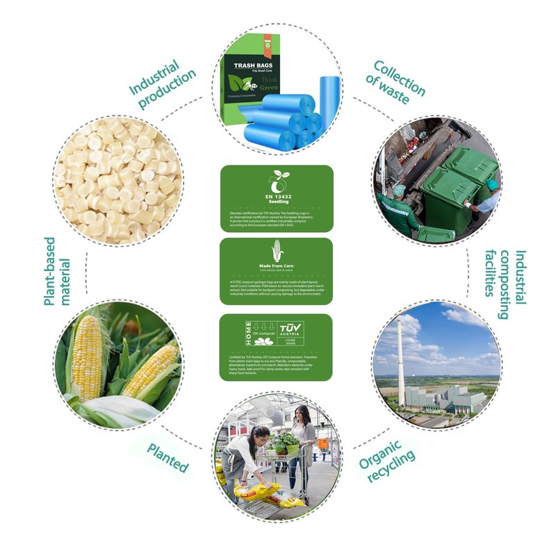 - ✔【Compostable Trash Bags】Our small trash bags are all made of plastarch material(PSM) with the U.S. standard ASTM D6866 PSM based on natural renewable plant starch extract, It not only has excellent leakage resistance and toughness. Not suitable for backyard composting, but degradable under industrial conditions without causing damage to the environment.