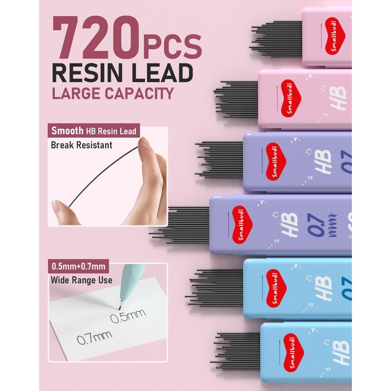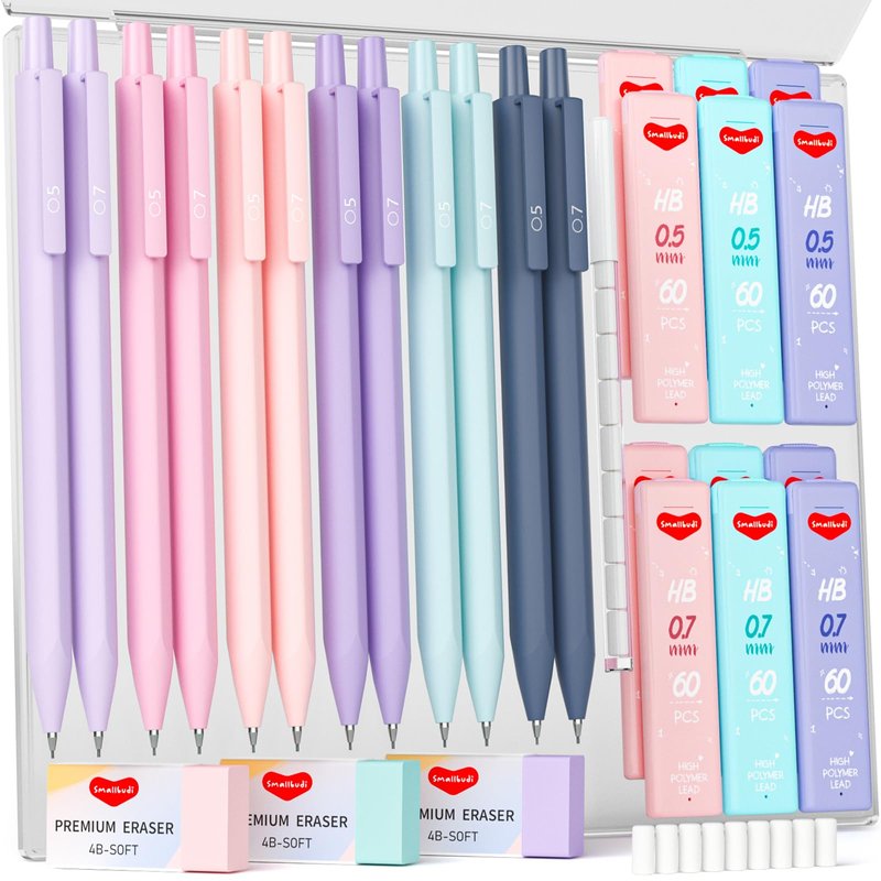 Smallbudi 29PCS 0.5 & 0.7 mm Mechanical Pencils Set with Case, Cute Mechanical Pencil with 720PCS HB Lead Refills, 3 Erasers & 18 Eraser Refills, Aesthetic Mechanical Pencils for Girls Writing