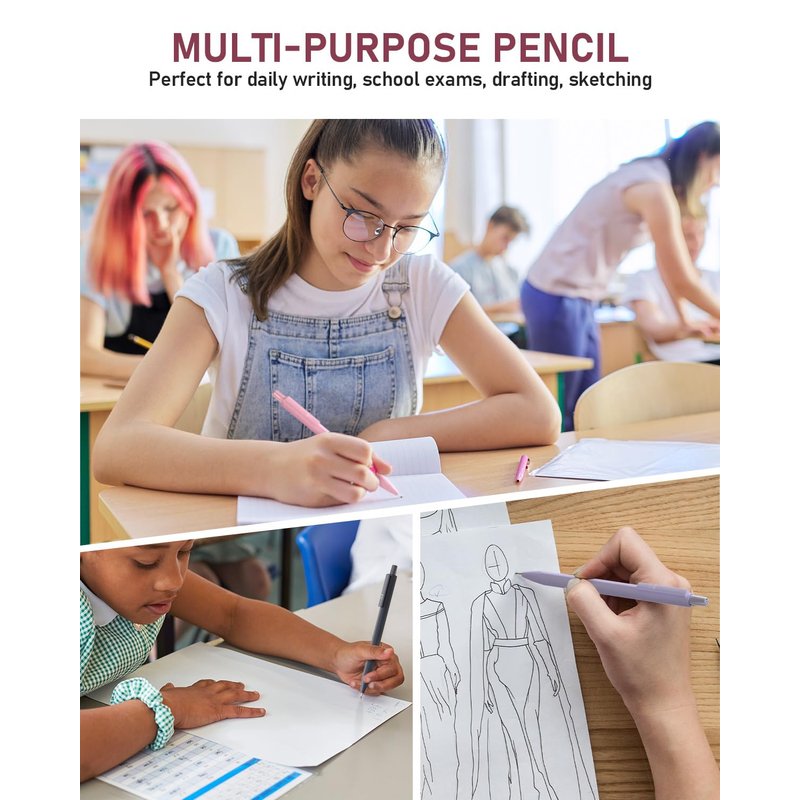 - ✍Cute Aesthetic Mechanical Pencil - Cute pencil in 6 macaron colors, these drawing pencil set is an ideal gift for school student, girl & women artists , as writing, drawing, sketching, drafting tools. The refillable eraser design helps you clean errors easily and conveniently.