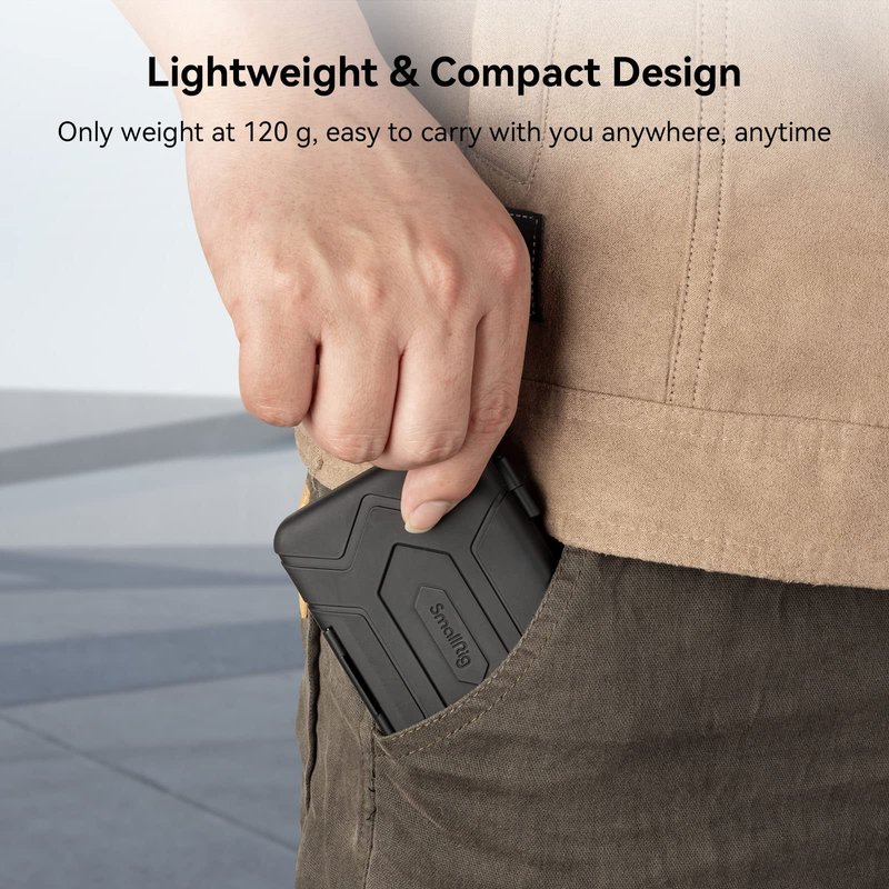 SmallRig Memory Card Case 3192 is designed for storage and protection of memory cards. It looks pretty and feels comfortable with uneven, anti-slip texture and can accommodate 6 SD cards, 6 Micro SD cards, 2 CFexpress Type A cards, 1 CFexpress Type B card (or XQD card) at the same time. Key Features 1. Supports such memory cards as SD card, Micro SD card, CFexpress Type A card, CFexpress Type B card, XQD card 2. Splash-proof, dust-proof, and shock-proof 3. Integrated moulding, feels comfortable Compatibility TF Card SD Card CFexpress Type A Card CFexpress Type B/XQD Card In the Box 1 x Memory Card Case Product Dimensions: 106 x 76 x 18.5mm Package Dimensions: 121 x 104 x 44 mm Net Weight: 120g±5g Package Weight: 164.5g±5g Material: PC, Silicone