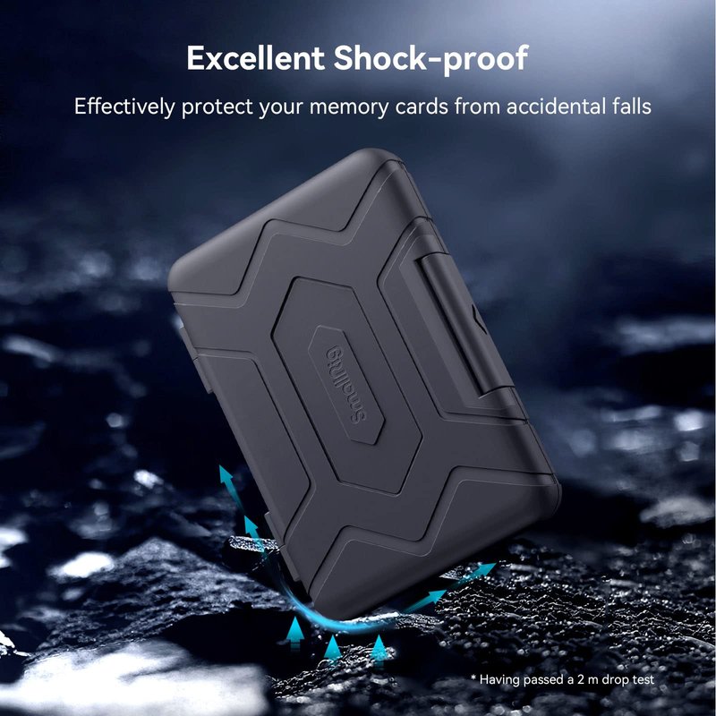 - Premium Material - TPU and PC casing is water-proof, and silicone lining provides better protection. This memory card case features dust-proof, and shock-proof, passed a 2m drop test, can protect your memory cards from accidental falls
