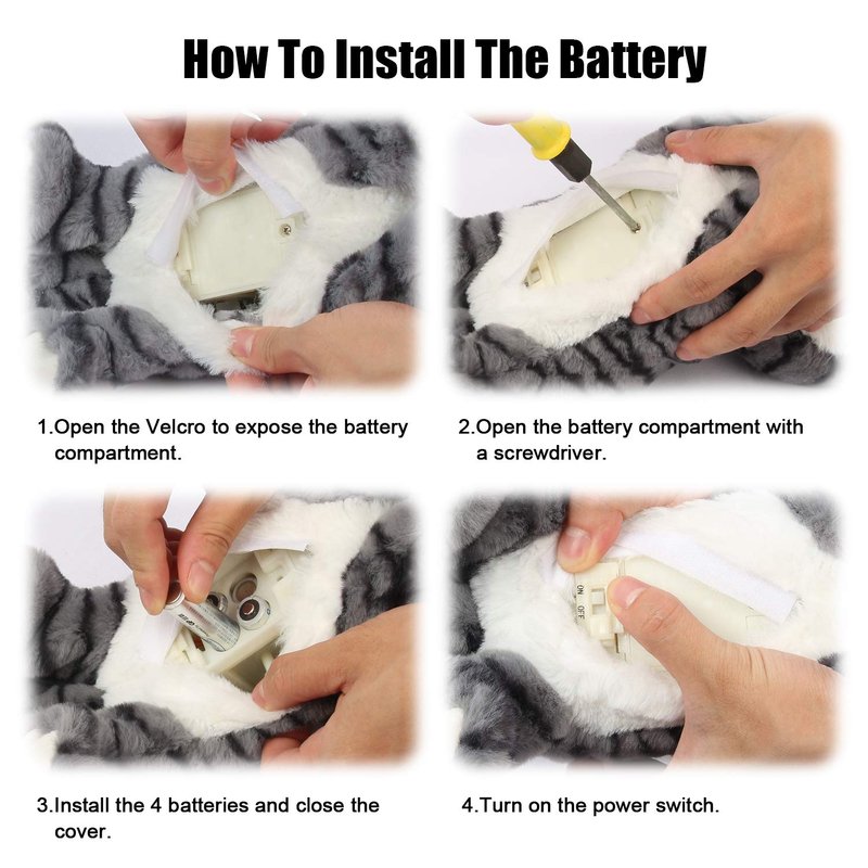 - HIGH QUALITY & SAFTY APPROVED:Battery Operated Sound Control Interactive Toy Cat,Battery compartment hidden design in the abdomen, switch cleverly arranged bones, very interesting.High quality and eco-friendly.Most safe,softable and reliable for the Baby&Kids.