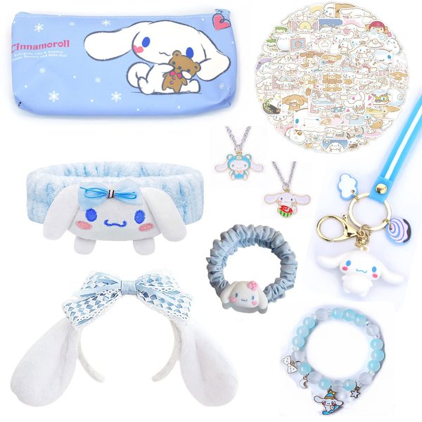 SMAROICE Kawaii Cinnamoroll Gift Set Cute Cinnamoroll accessories including Hairpin Headbands Cosmetic Pouch Necklaces Bracelets Keychain Stickers