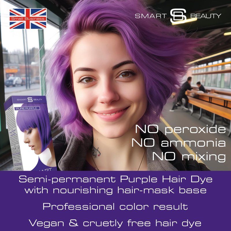 Smart Beauty Purple Hair Dye Semi Permanent, Bright Purple Hair Dye Perfect for Light Blonde, with Non-Drip Pre Mixed Formulation with Hair Conditioning Cream, Hair Colour, Vegan, Cruelty Free