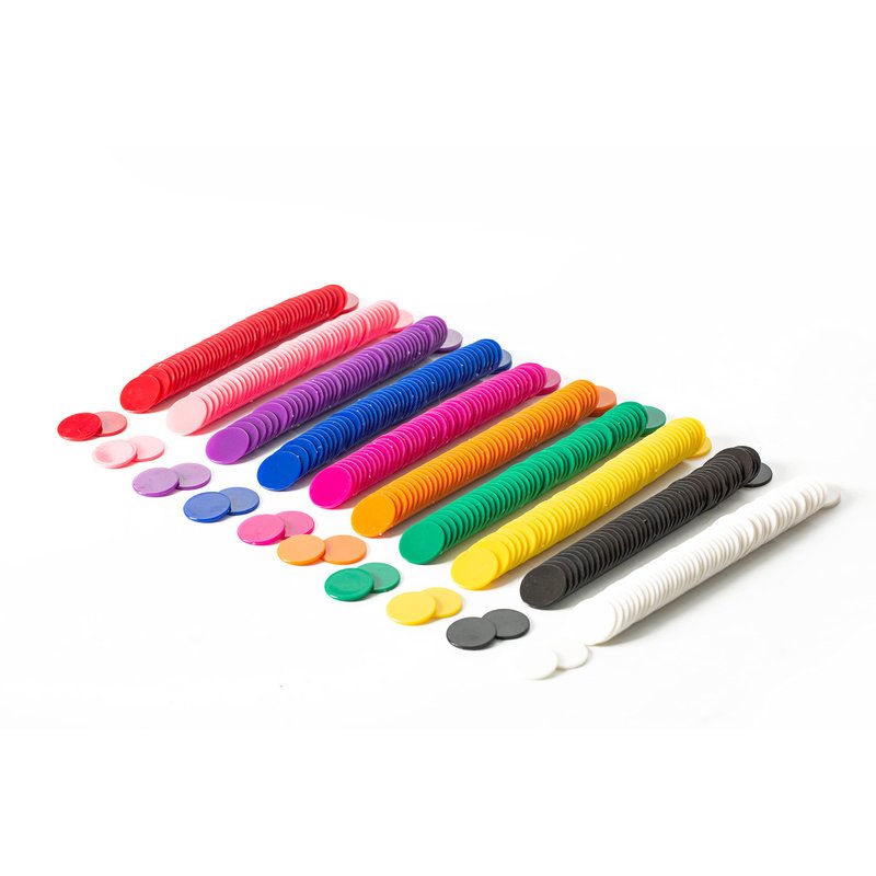 - Comes with 10 colors with each 30 pieces. These counters are about 1” in diameter for easy pick up.