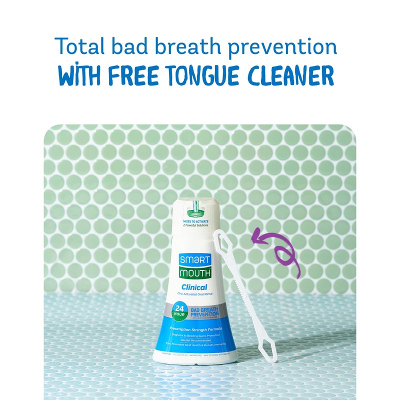 SmartMouth DDS Activated Clinical Mouthwash with Tongue Cleaner - Adult Mouthwash for Fresh Breath - Clinical Strength Mouthwash for Gum Health, Gingivitis & More - Clean Mint Flavor, 16 fl oz