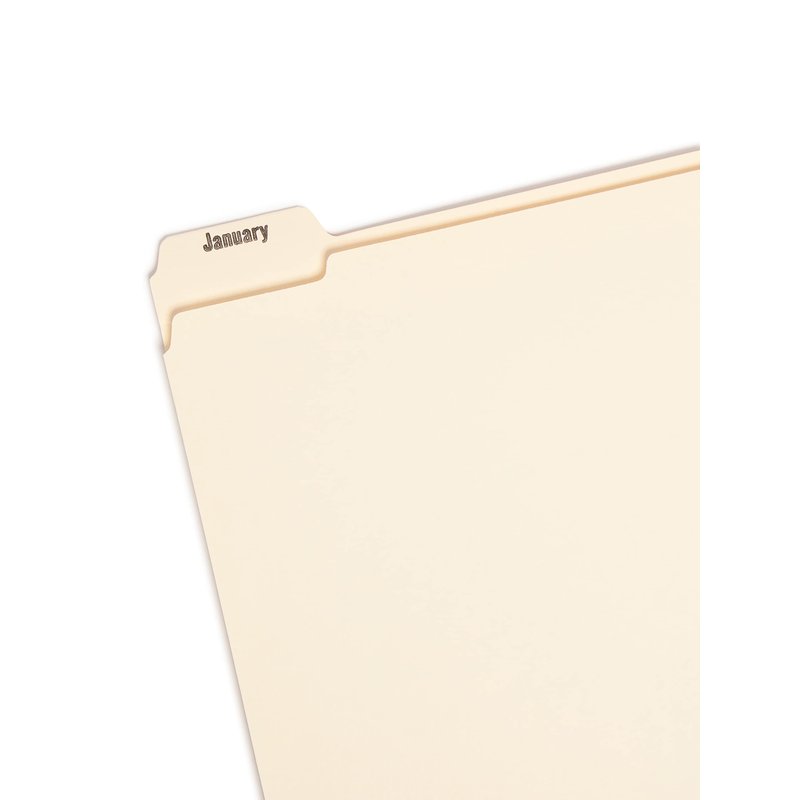 Smead Indexed File Folders, Monthly (Jan-Dec), 1/5-Cut Tab, Assorted Positions, Letter Size, Manila, 1 Set of 12 (11765)