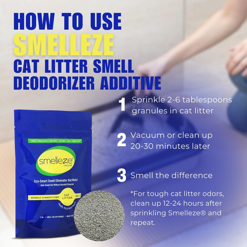 SMELLEZE Natural Cat Litter Deodorizer and Litter Box Odor Eliminator Additive for Strong Smells Unscented Kitty Litter Smell Control Safe Long-Lasting Granules for Multi Cat Homes 2 lb