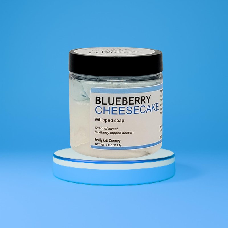 Sweet blueberry cheesecake whipped soap is fun and smells delicious! It will leave skin moisturized and feeling fresh! Our whipped soaps come with a scoop to keep the water out, to preserve the quality! All it takes is one or two scoops, rub all over, to form a lather and rinse off... a little goes a long way! net wt. 4oz