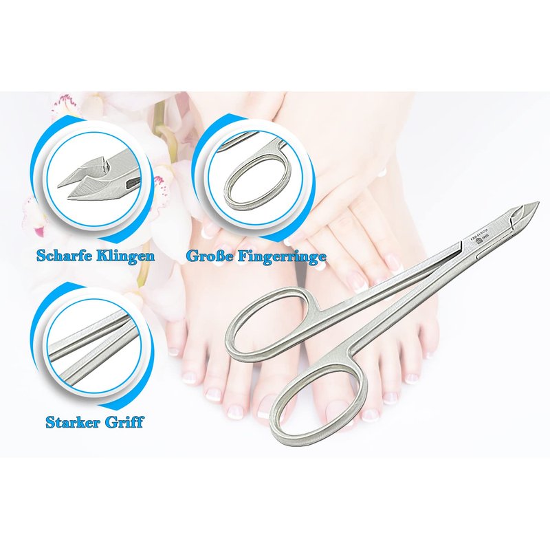 - ✅ ERGONOMIC DESIGN: This cuticle trimmer with scissors handle provides a precise, stress-free and comfortable control by large finger holes for smooth and durable experience.