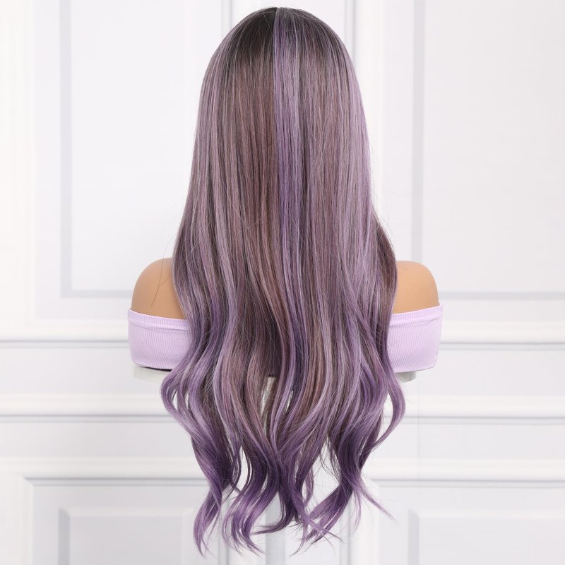Smilco Synthetic Wigs for Women Ombre Light Purple Wig Long Wavy Curly Middle Part Wig Natural Looking Hair Wigs Synthetic Heat Resistant Fiber Wigs for Daily Party Cosplay (26 Inch)