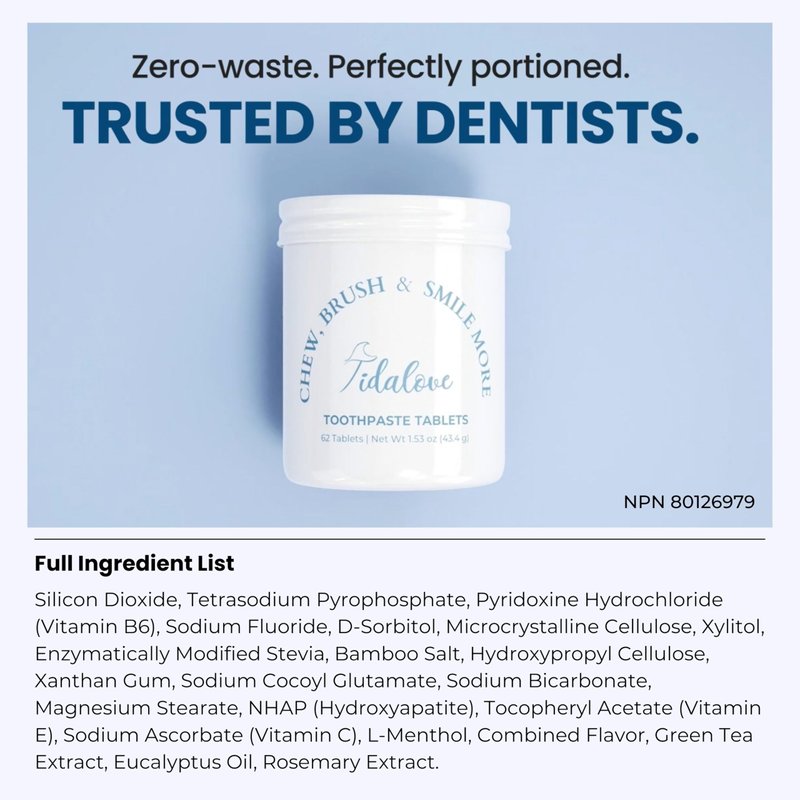 - REDUCE WASTE AND PROTECT THE PLANET: By opting for toothpaste tablets in a reusable tin, you’re contributing to the reduction of waste from traditional toothpaste tubes, making a positive impact on the environment.